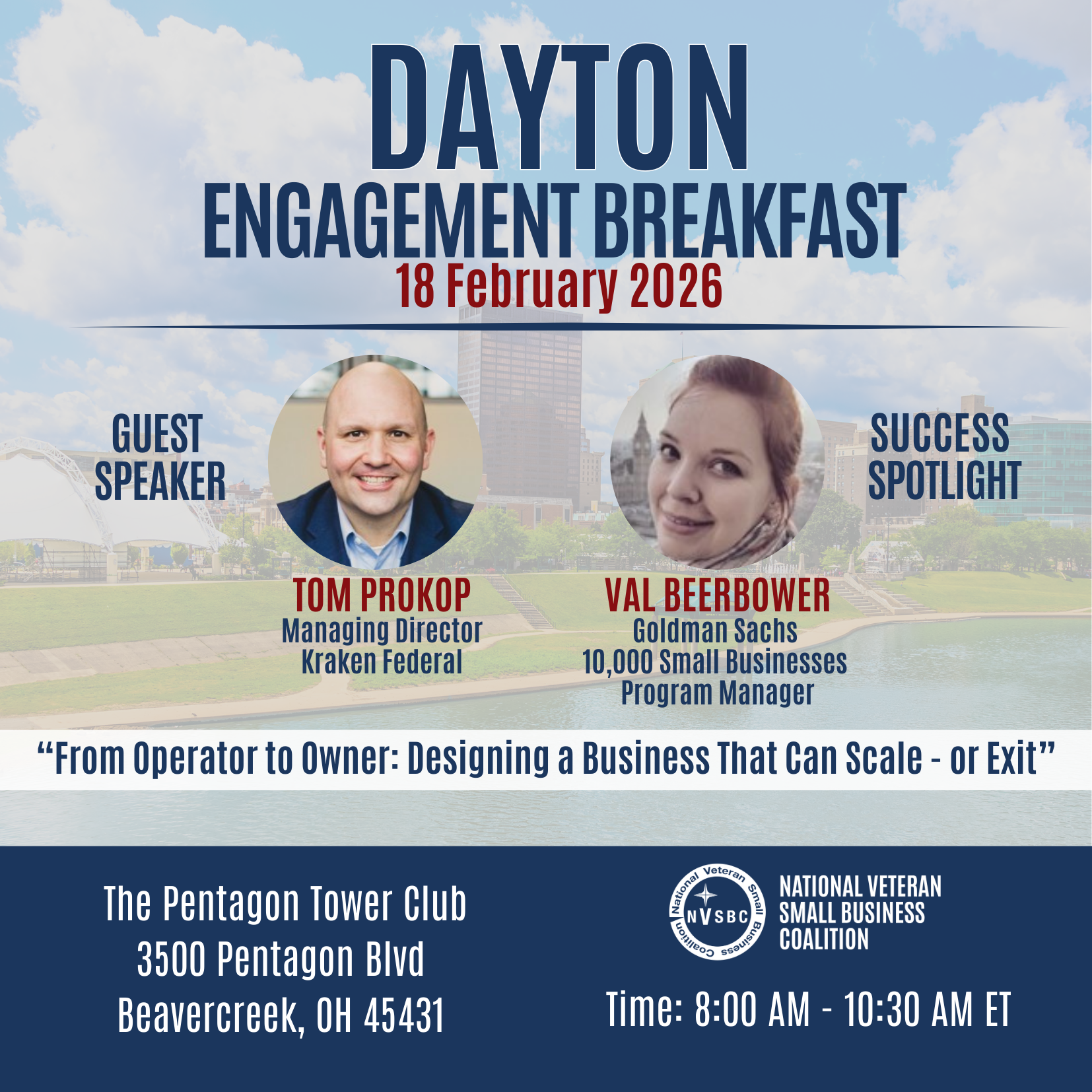 All Dayton Engagement events are federal government contracting focused and ALL (NVSBC Members, Non-members, Veteran Owned Small Business Professionals, Veterans, etc) are welcome to attend.
