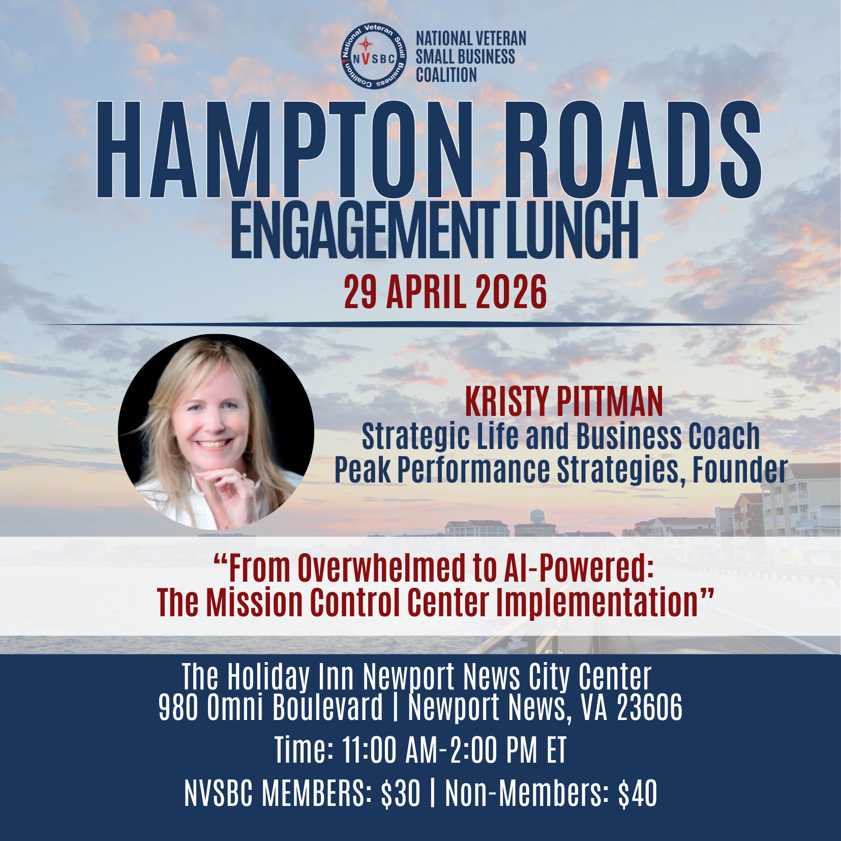 All Hampton Roads Engagement events are federal government contracting focused and ALL (NVSBC Members, Non-members, Veteran Owned Small Business Professionals, Veterans, etc) are welcome to attend.